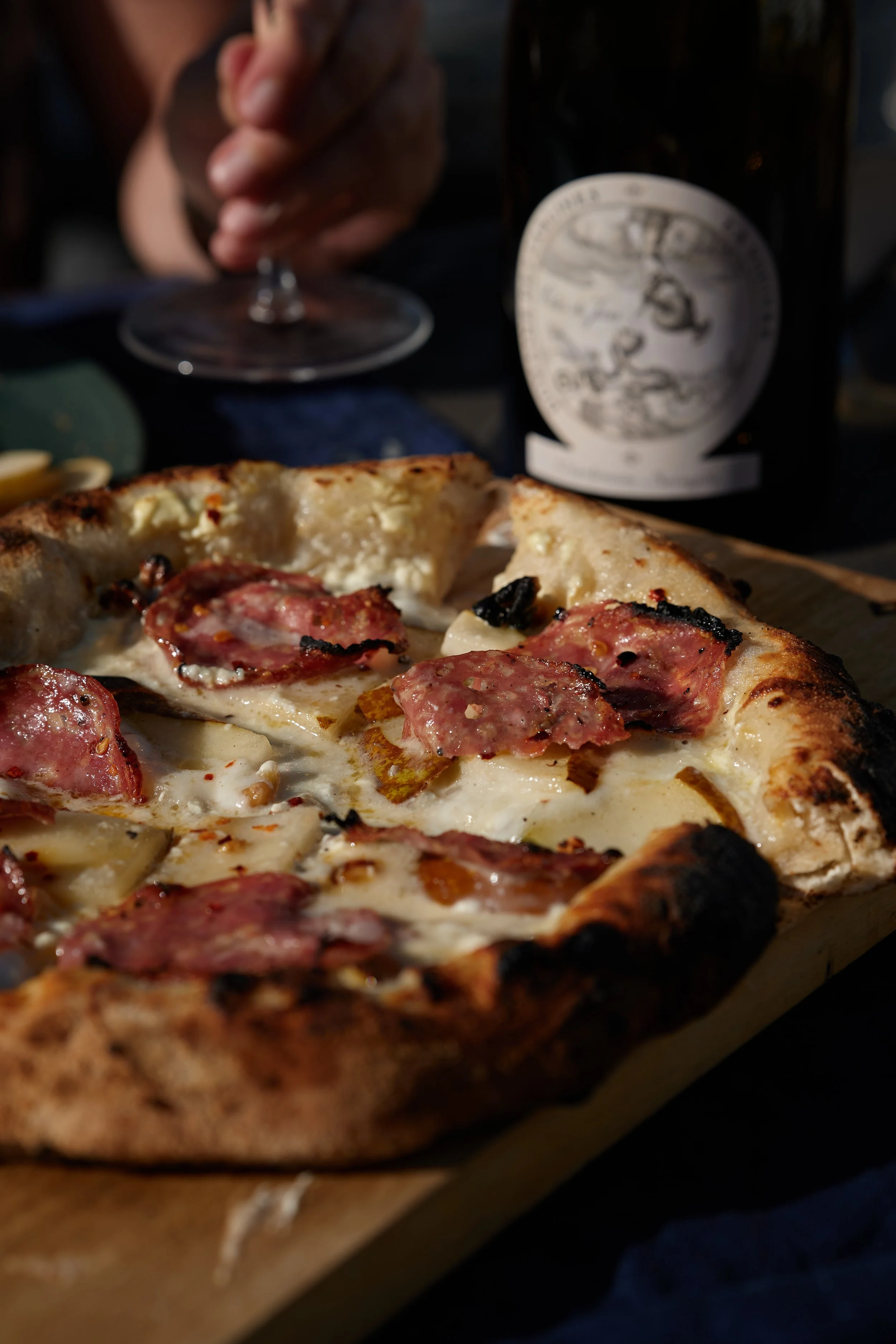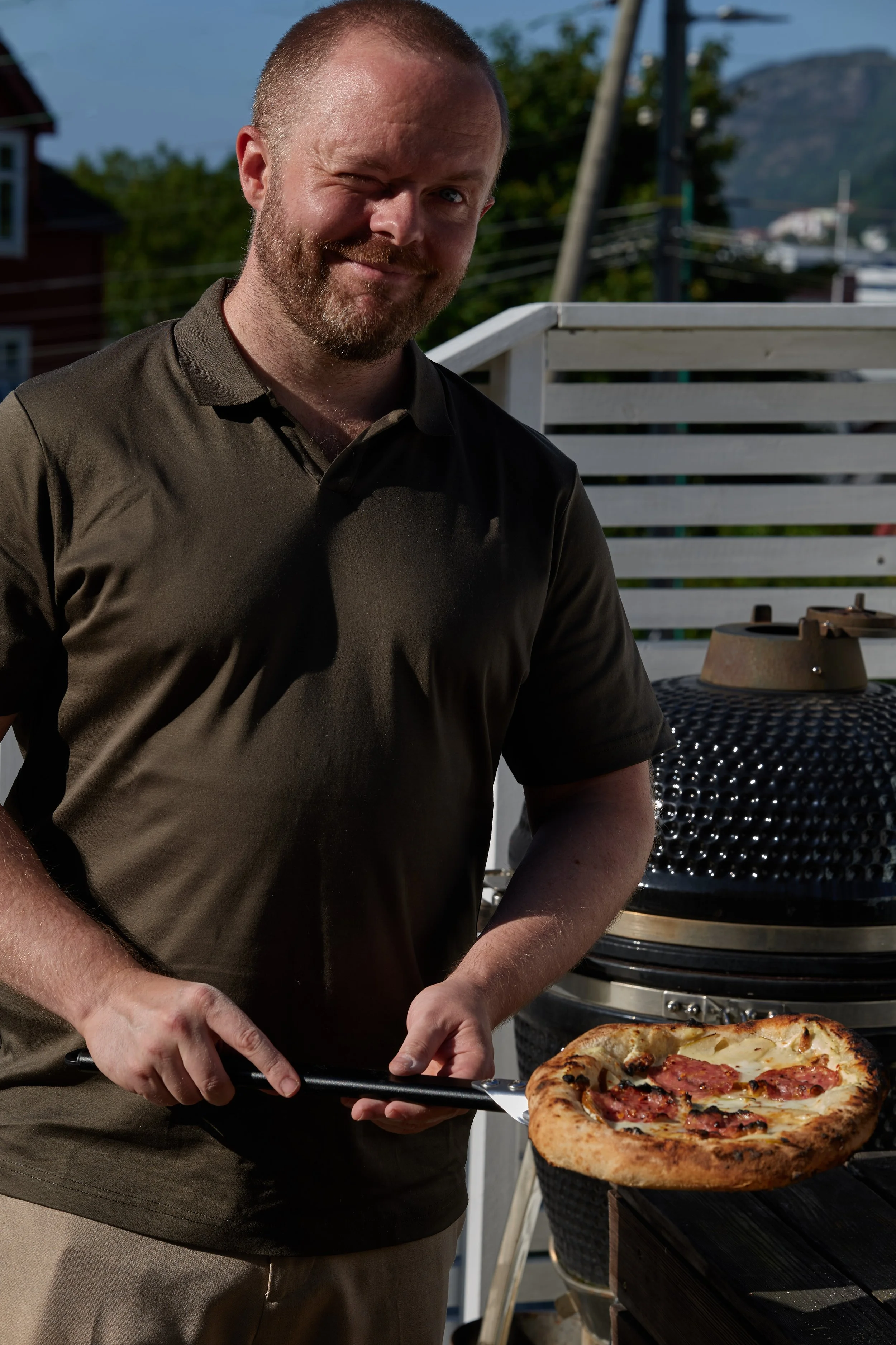Jeg liker pizzaen best når den får noen brente flekker både på deigen og på salamien. Ovnen min er fra merket Cozze, går på gass og koster ikke allverdens. Til vanlig bruker vi bare en tykk stålplate i komfyren, men best resultat blir det alltid ute. Hadde Bergensværet bare gjort det fristende litt oftere…