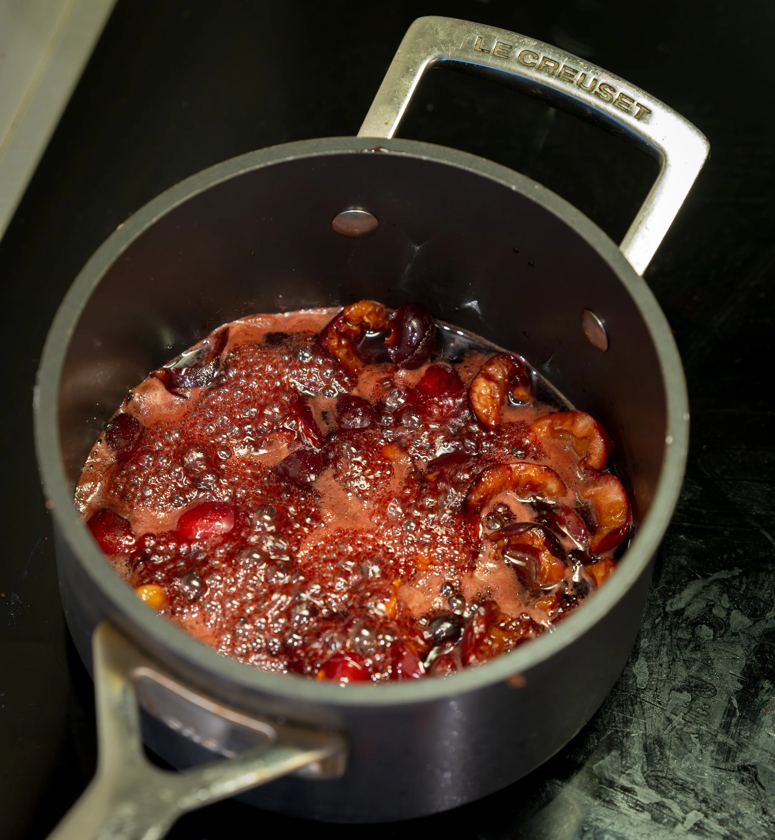 La det stå og putre i 10-12 minutter til morellene er myke og alt har kokt inn til en deilig blanding. Kjør det glatt med en stavmikser, eller la være for en grovere konsistens. Jeg valgte sistnevnte.